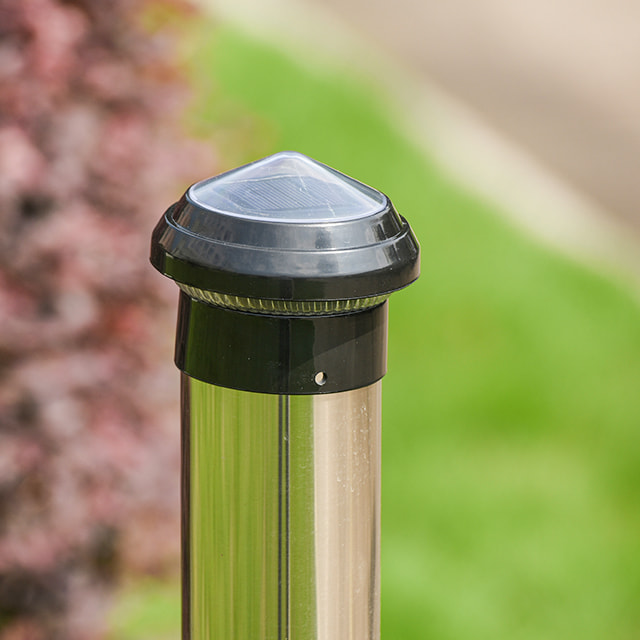 Størrelsen på denne stolpelampen er 85x85x70 mm, som er egnet for kjettinggjerdestolper med en diameter på 2,5 tommer, så brukerne trenger ikke å utføre noen kompliserte installasjonstrinn, bare feste den på gjerdestolpen. Dette designet er spesielt egnet for brukere som ønsker å installere raskt og uten profesjonelle verktøy. Enten det er et gjerde i et boligområde eller belysning i en park eller hage, kan det gi en ideell belysningsløsning. Og produktet tar i bruk energisparende lysteknologi, som kan redusere energiforbruket samtidig som det sikrer lysstyrke.